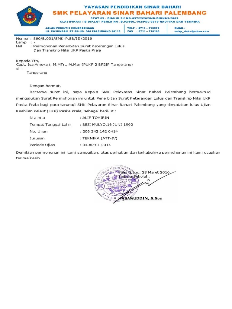 Actuele routebeschrijving naar smk pelayaran sinar bahari, lorong pasundan, palembang op basis van live verkeersinfo en rijomstandigheden van . Kepala smk pelayaran sinar bahari palembang. Tentang pengangkatan perwira batalyon / pembina smk pelayaran . Dan sistem informasi) return to article details sistem informasi akademik berbasis web pada smk pelayaran sinar bahari palembang download download pdf. Smk pelayaran sinar bahari palembang.